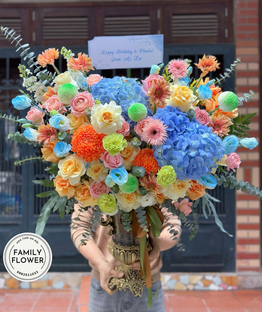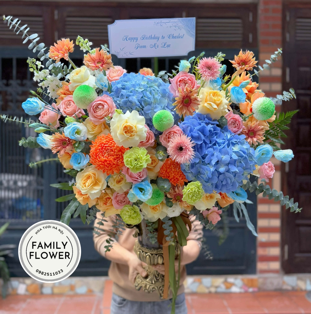 Với hoa sinh nhật Ba Đình hoa luôn là món quà mang theo nhiều thông điệp tinh tế mà lời nói khó thể diễn tả trọn vẹn. Chọn mua hoa tươi Hà Nội trong những dịp đặc biệt như sinh nhật, một bình hoa tươi rực rỡ không chỉ đơn thuần là món quà, mà còn là cách gửi gắm tình cảm chân thành, sự quan tâm và lời chúc tốt đẹp nhất đến người nhận. Mẫu hoa sinh nhật Hà Nội cao cấp từ Family Flower được thể hiện trong hình chính là minh chứng cho sự kết hợp hài hòa giữa nghệ thuật cắm hoa và ý nghĩa sâu sắc của từng sắc màu.
