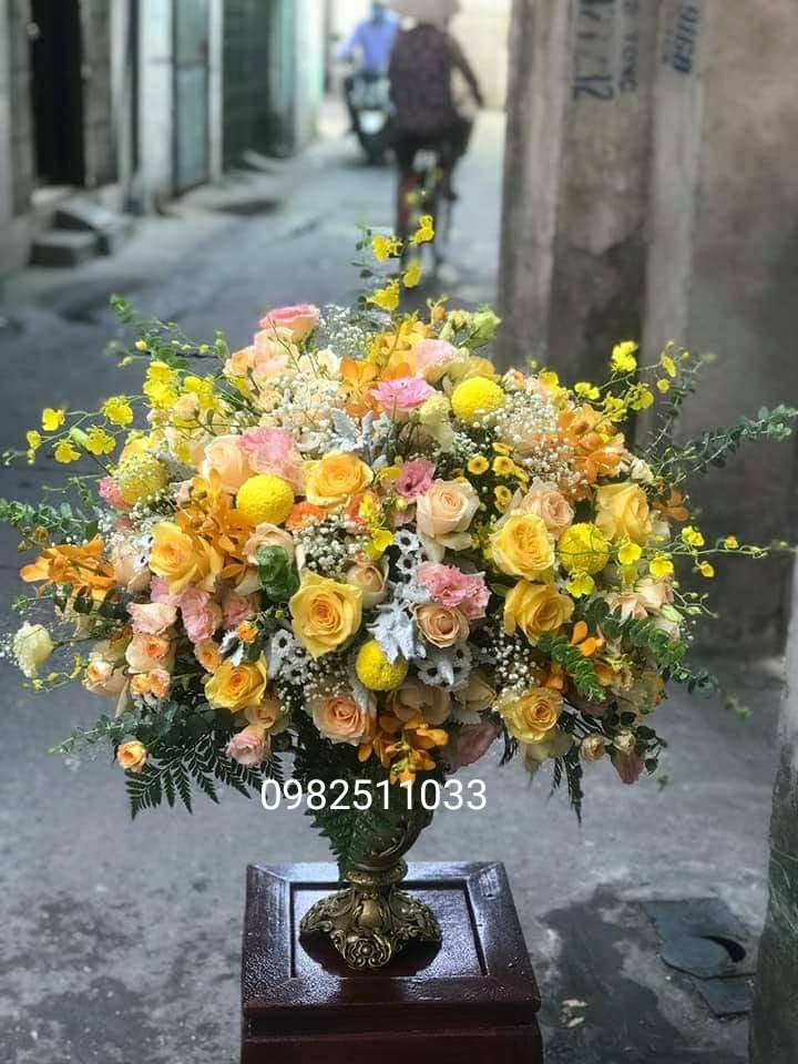 Bình hoa TONE VÀNG chúc mừng sinh nhật công ty, hoa khai trương đẹp tại Hà Nội