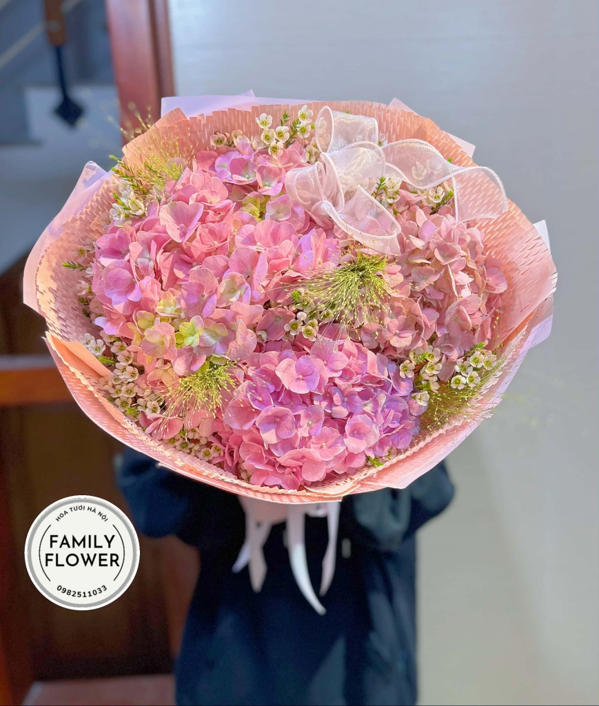 Bó hoa cẩm tú cầu hồng mang vẻ đẹp dịu dàng, lãng mạn, là món quà ý nghĩa dành tặng bạn gái trong dịp 8 tháng 3. Sắc hồng ngọt ngào tượng trưng cho tình yêu chân thành, sự quan tâm và những cảm xúc sâu sắc khó nói thành lời. Bó hoa tặng bạn gái 8 tháng 3 được thiết kế tròn đầy, kết hợp giấy gói hồng tinh tế và nơ mềm nhẹ, tạo nên tổng thể sang trọng và cuốn hút.