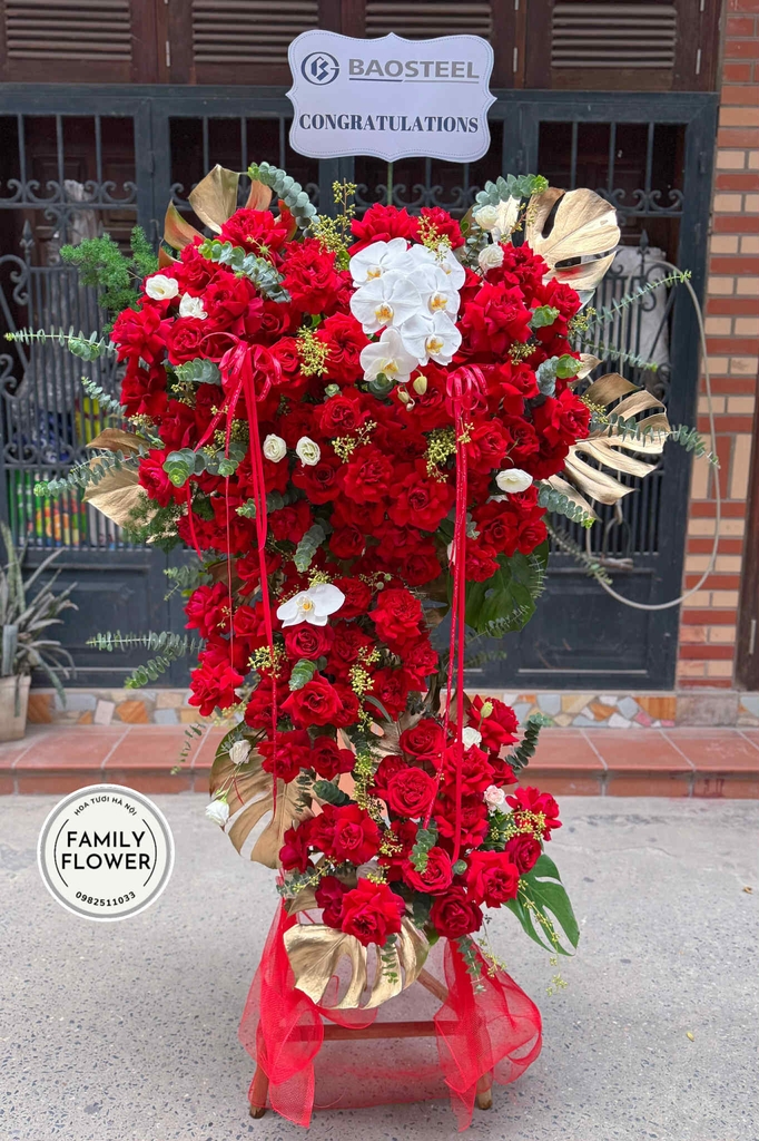 Kệ hoa hồng đỏ mừng khai trương hồng phát ở quận Cầu Giấy ! Hoa khai trương Cầu Giấy