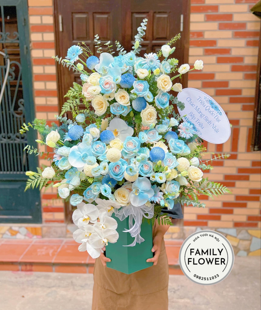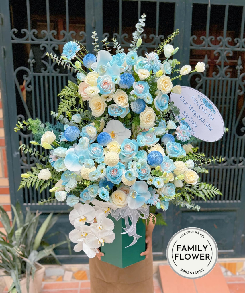 Lẵng hoa tone xanh tặng sinh nhật quận Ba Đình Hà Nội ! Mua hoa sinh nhật Ba Đình ! Hoa Hà Nội